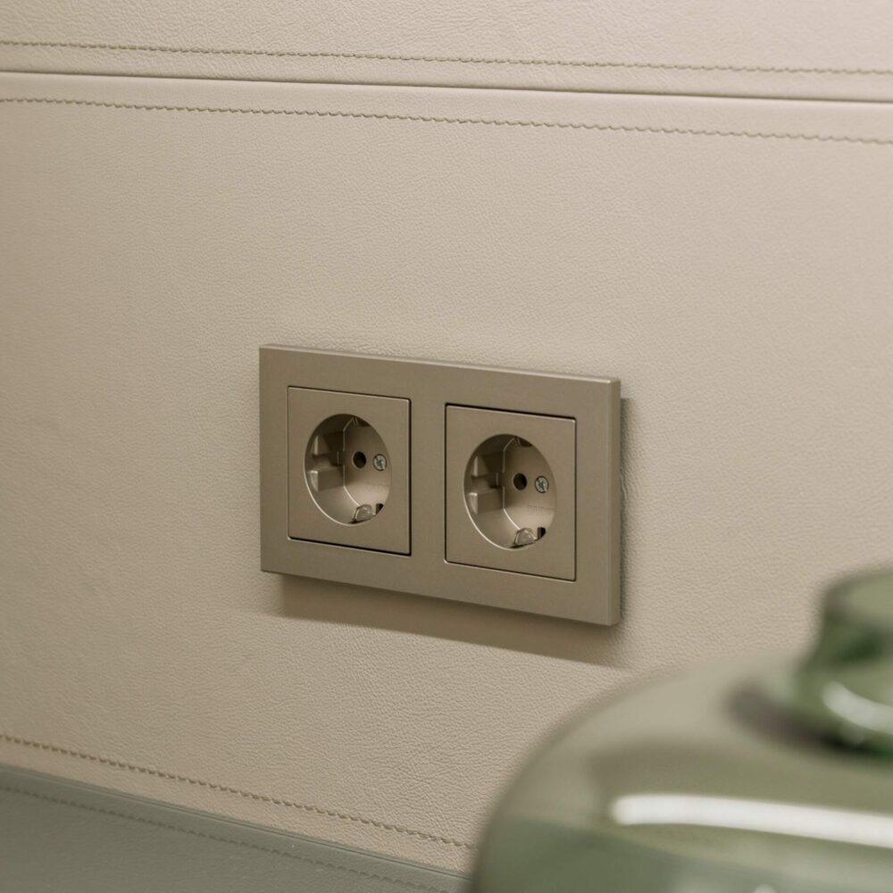 The frames for the A CREATION range can be combined with all centre plates from the JUNG A range. These include light switches, sockets for international systems, multimedia connections, universal LED dimmers and KNX push-buttons.