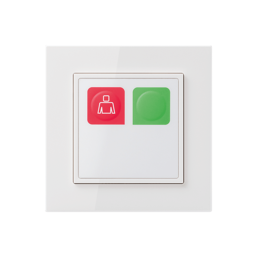 Call and presence buttons in the hospicall P7 emergency call system can also be set individually to a room module, such as a call and presence button for separate installations, e.g. in the WC.