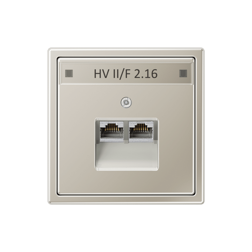The modular jack socket with two network connections and a inscription field is available in various designs and colours.