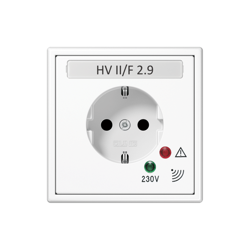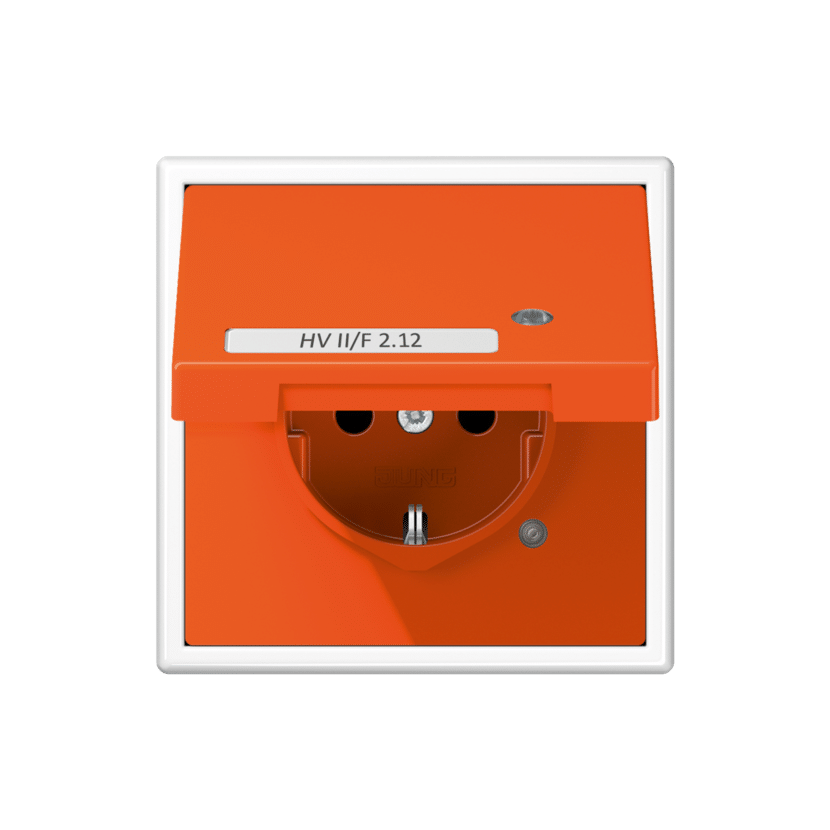 The SCHUKO® socket with hinged lid and pilot light also indicates the functioning when the lid is closed.