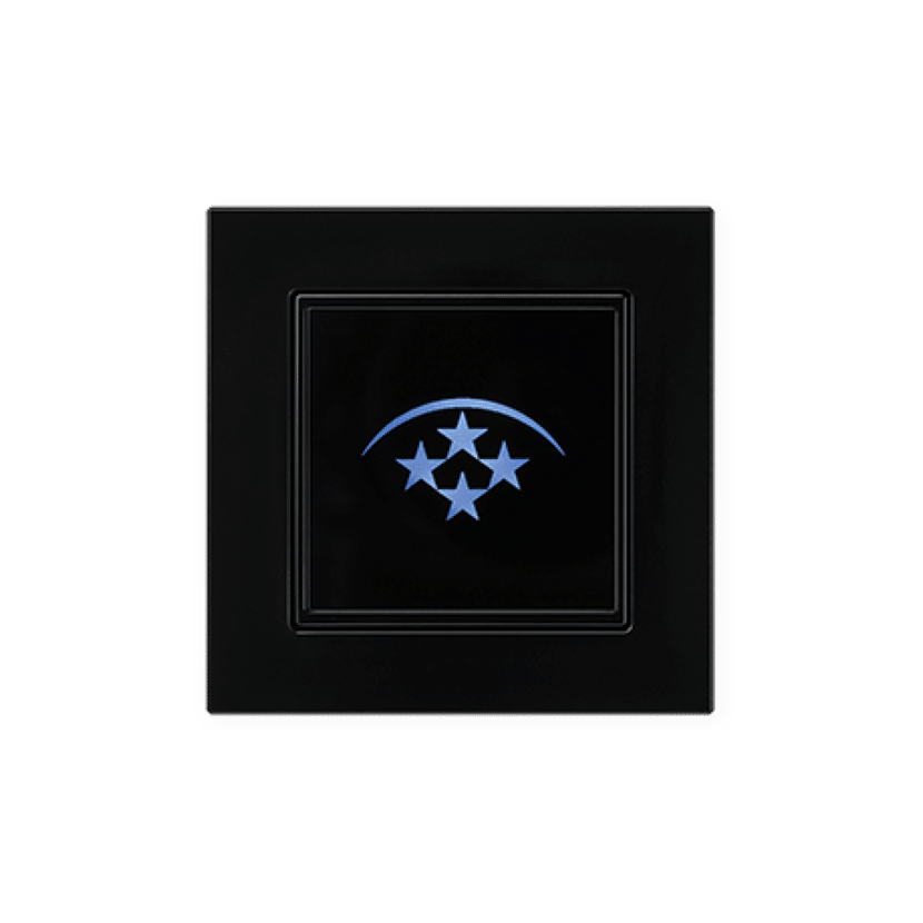 The electronic key card holder works with RFID cards from various manufacturers. Coloured status LEDs provide feedback about the function of the card, presence of the guest or the shut-off delay. It determines when the lighting is switched off after the card is removed. The light colours of the LEDs are specified by the installer during installation in consultation with the owners.