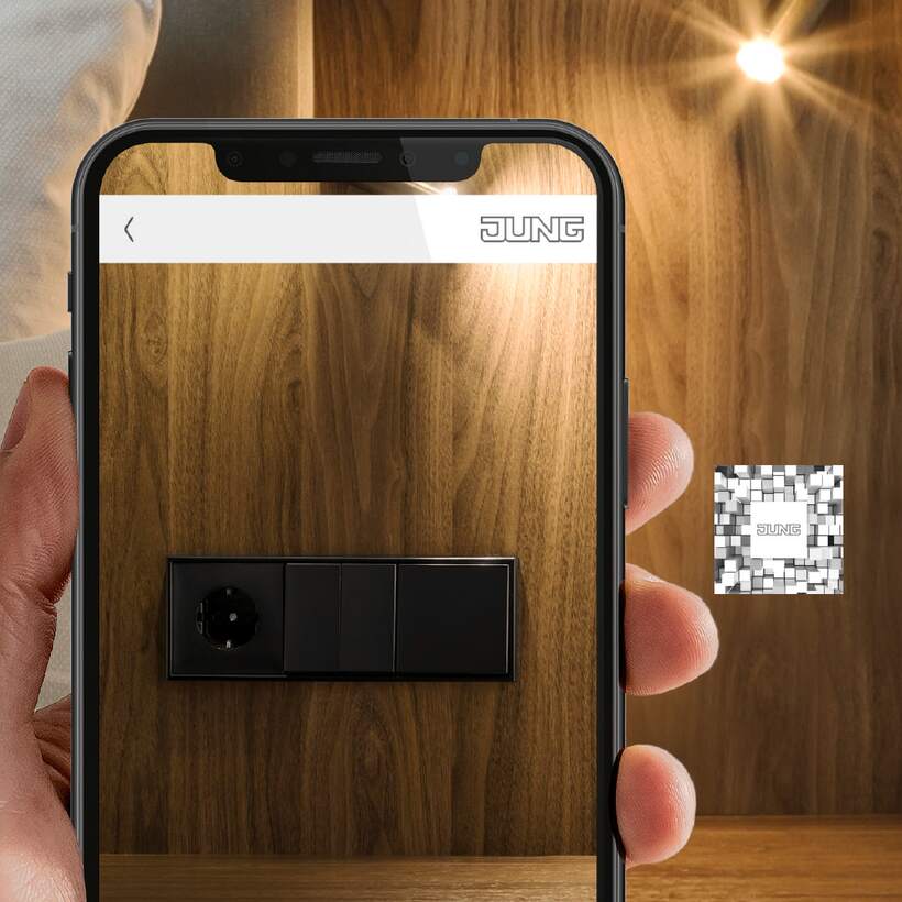 Simply select a switch range, a material and a colour in the app, then attach the JUNG Experience Marker in the position where the product should be seen.