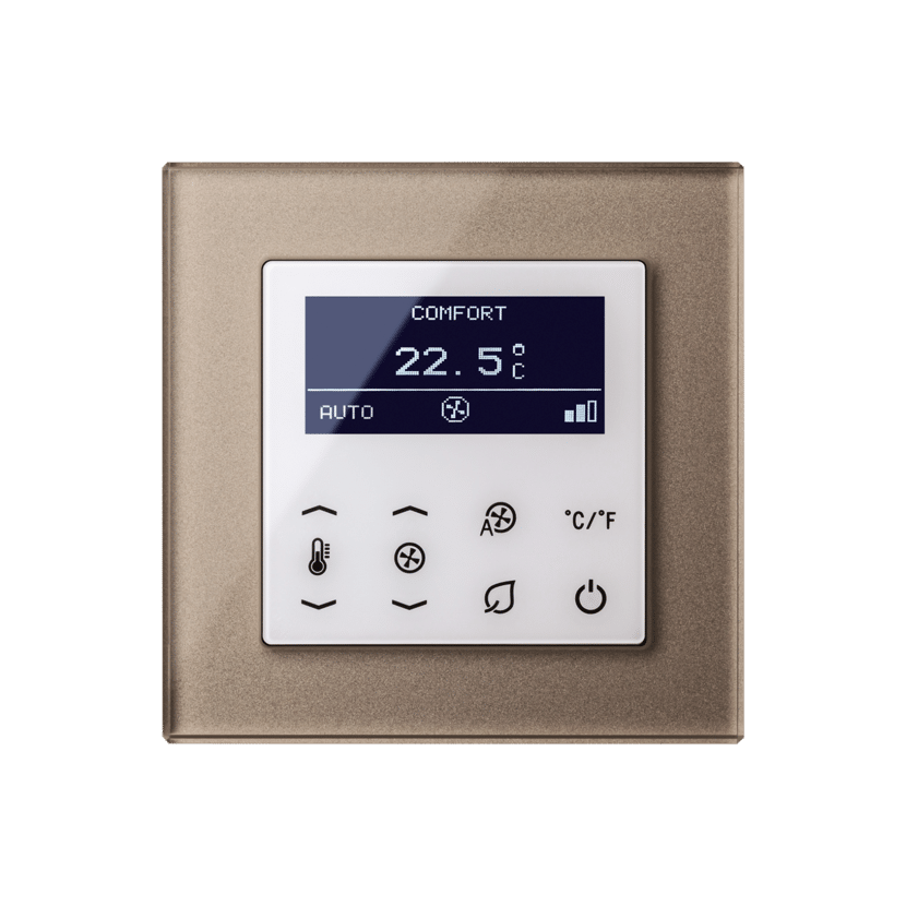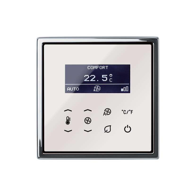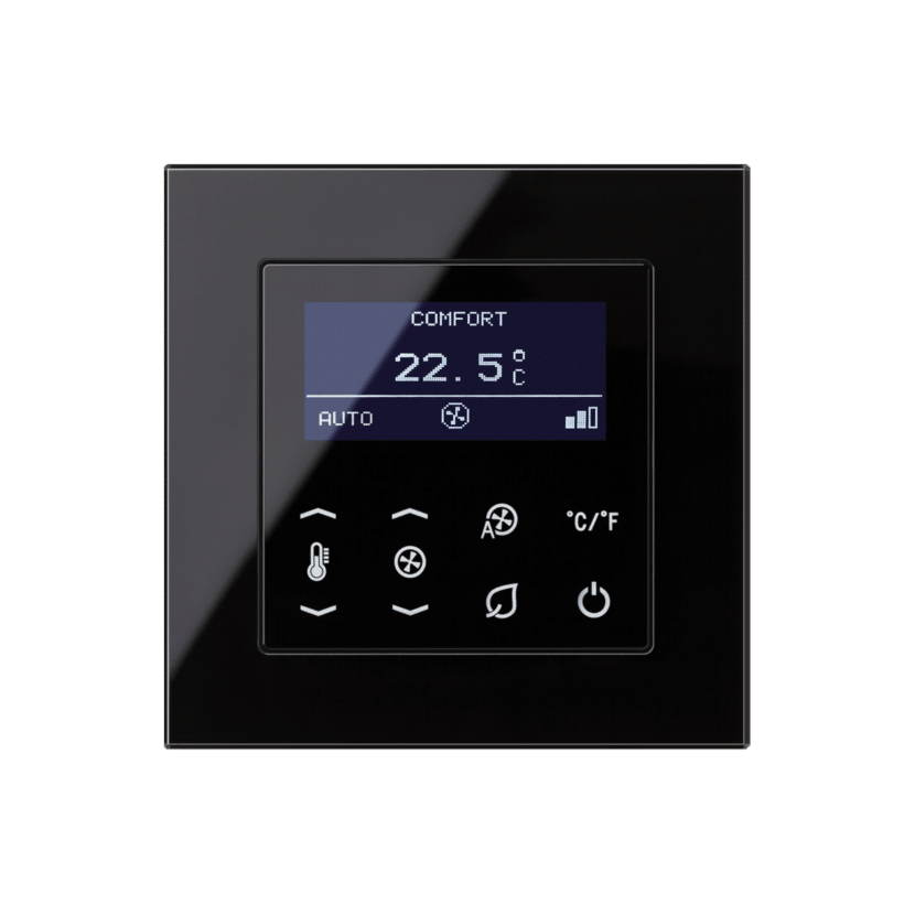 Consistent design, convenient and energy efficient: to control a fan coil and air conditioning system, we offer room thermostats both for KNX and for conventional installations.