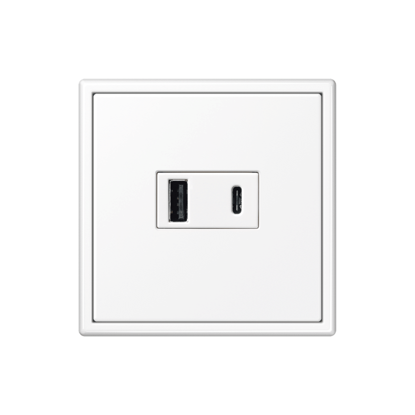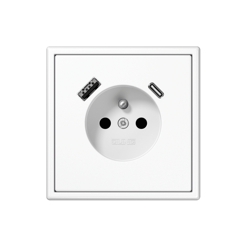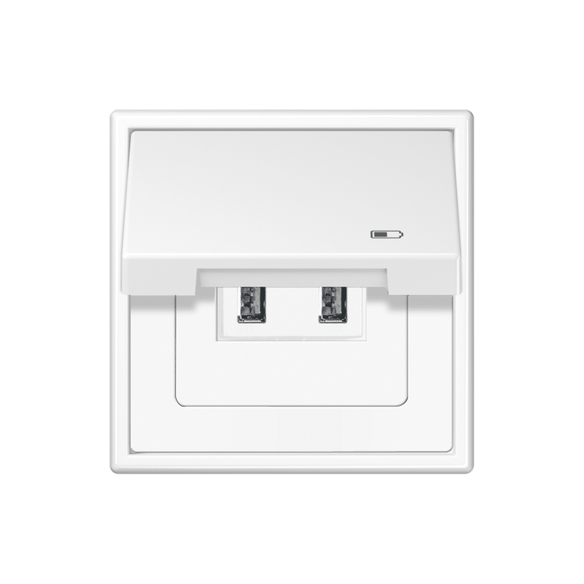 The new JUNG SCHUKO® sockets with USB ports recharge every battery quickly – with an output of up to 18 watts. The SCHUKO® sockets with integrated USB ports provide various options for charging different devices.