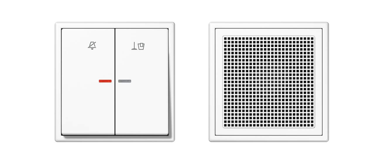 Guests can very easily specify whether they want their room to be cleaned or do not want to be disturbed. The hotel personnel can make their presence known using a bell push-button in the corridor: the three-tone gong sounds in the hotel room. You can download an audio sample here.