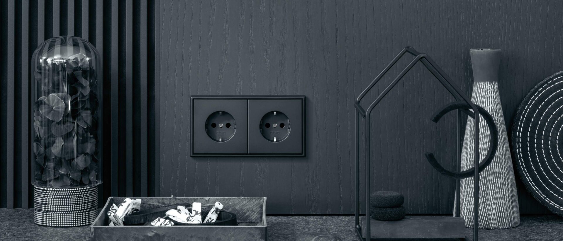 The black for impressive scenes. Black absorbs the light. Switches and sockets in velvety graphite black impressively set the scene for dark walls. Pure black as a statement.