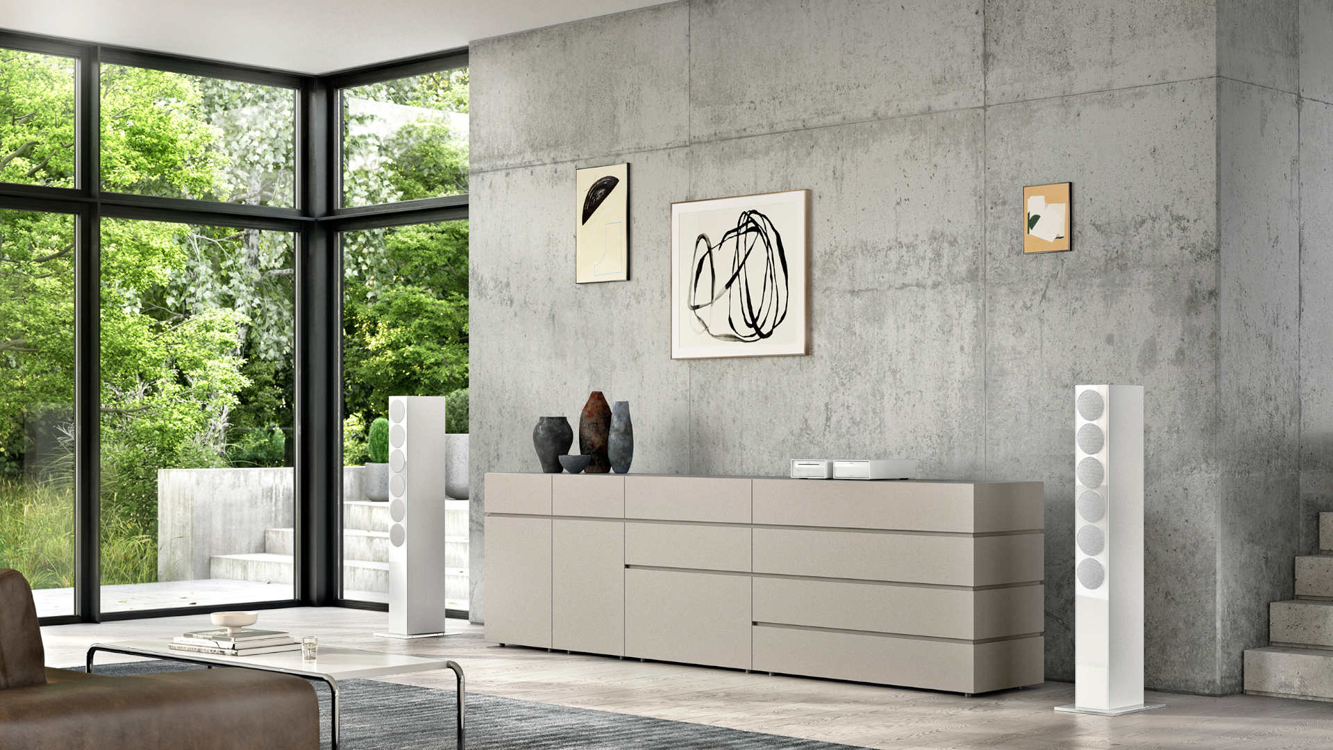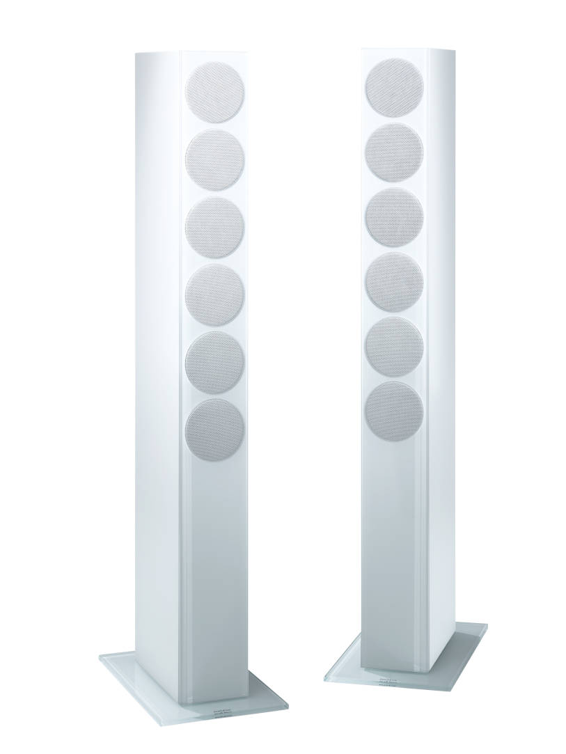 The Prestige G140 speaker offers clear, highly detailed and authentic sound reproduction with full, deep bass notes, clearly defined midranges and precise trebles. Four long-throw bass drivers, a low-distortion mid-range speaker and a tweeter with a large fabric membrane ensure the uncompromisingly precise and powerful sound quality of the Prestige G140. This elegant sound column with an 8 mm thick glass front panel and glass base delivers excellent sound results, not only as a stereo speaker, but also in sophisticated surround arrangements.