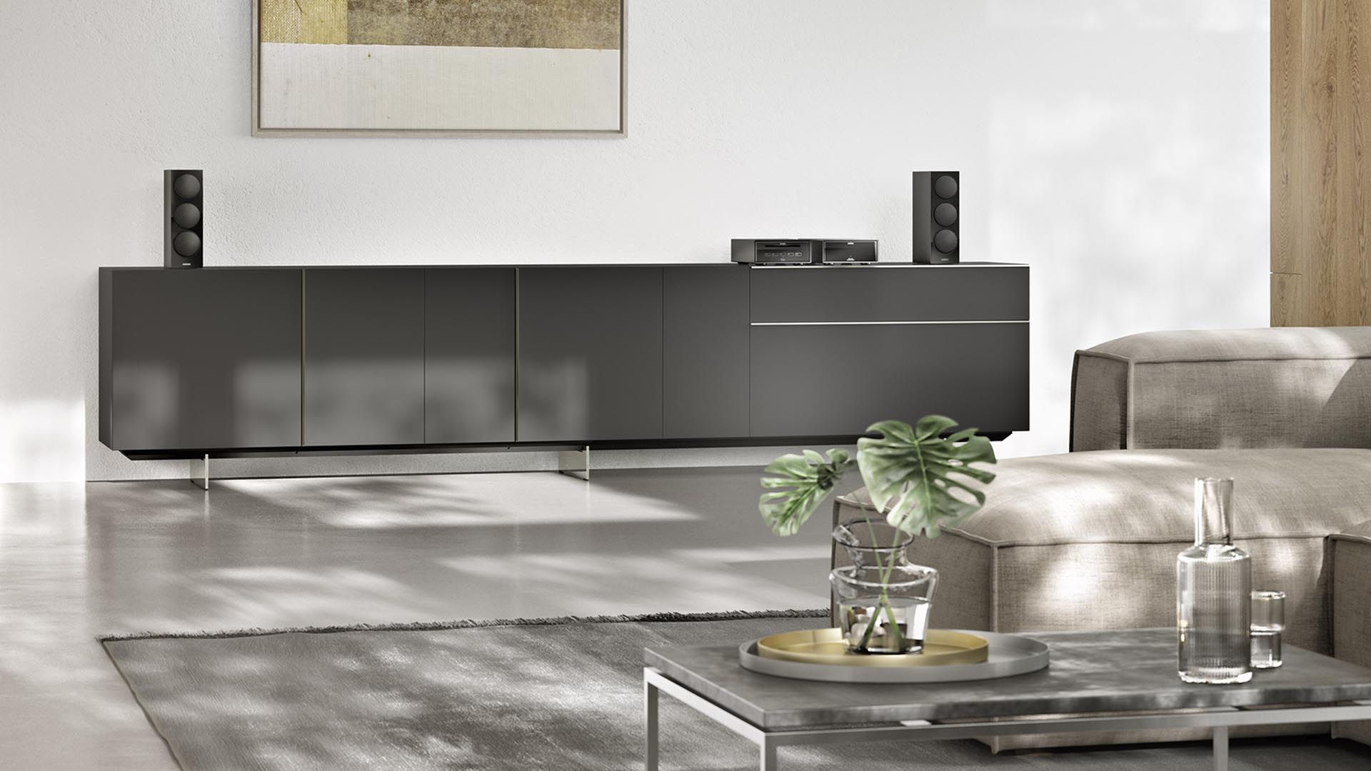 The ideal speaker for a wide range of uses in living rooms. With its format, this 2-way speaker delivers perfect sound from a small size. The compact sound transducer is a real eye-catcher, and features a high-quality finished wooden cabinet and a glass front with rear-side coating. Highly flexible: With the wall bracket, the Shelf G70 can be positioned optimally wherever you want it.