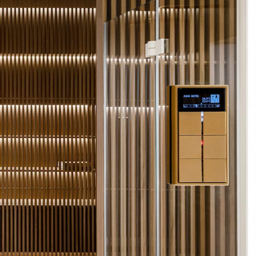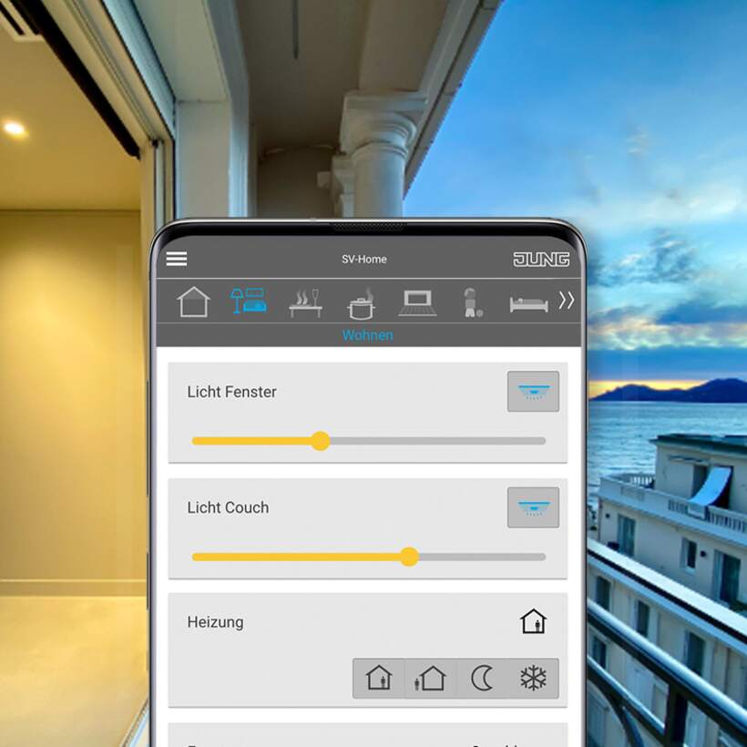 With our KNX applications, life on a yacht becomes safer and more convenient. Integrate the on-board systems such as entertainment, climate technology and steward call and control the functions centrally. Atmospheric lighting scenes at the press of a button and an automatic or intuitively operated light and sun protection. Set the individual room temperature when onboarding and easily operated multimedia applications provide feel-good moments: with a JUNG KNX system, this can be easily implemented.