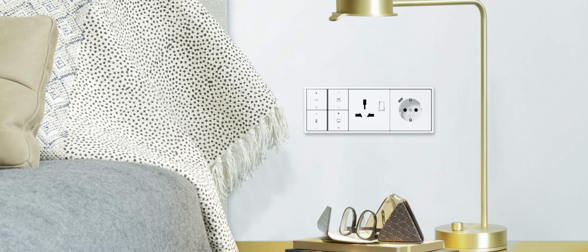 The shadow gap in the range gives the impression that the switches, push-buttons and sockets are floating. The design-oriented style is clear and precise.